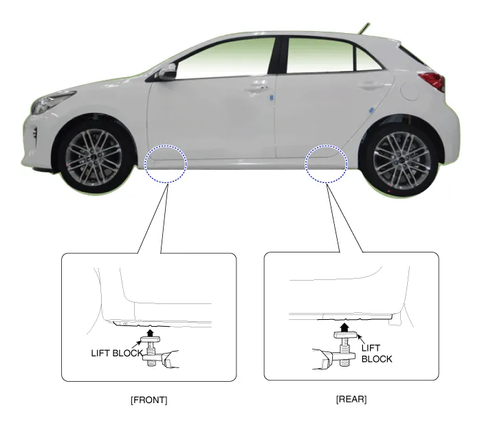 Raise the hoist a few inches (centimeters) and rock the vehicle to be sure it is firmly supported. |
