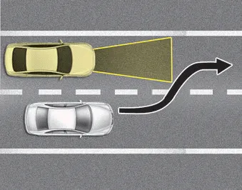 When a vehicle changes lanes in front of you, FCA system may not immediately detect the vehicle, especially if the vehicle changes lanes abruptly. In this case, you must maintain a safe braking distance, and if necessary, depress the brake pedal to reduce your driving speed in order to maintain a safe distance.