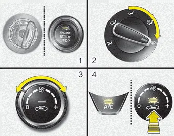 The indicator light in the air intake control button will blink 3 times with 0.5 second of interval. It indicates that the defogging logic is canceled or returned to the programmed status.
