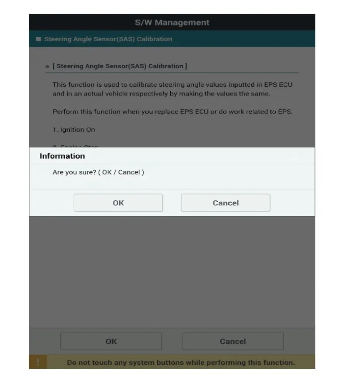 Select the "Steering Angle Sensor (SAS) Calibration" on KDS screen, then select OK. |
