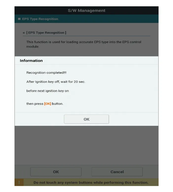 Select the "EPS Type Recognition" on KDS screen, then select OK. |