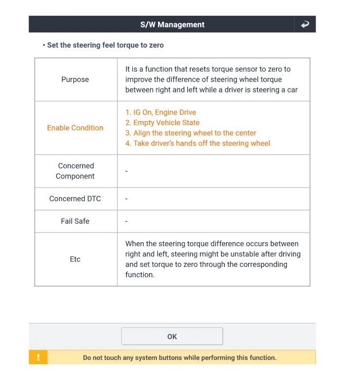 Select the "Set the steering feel torque to zero" on KDS screen, then select OK. |
