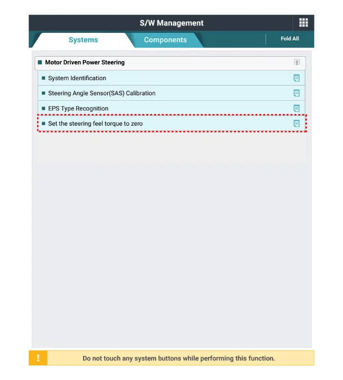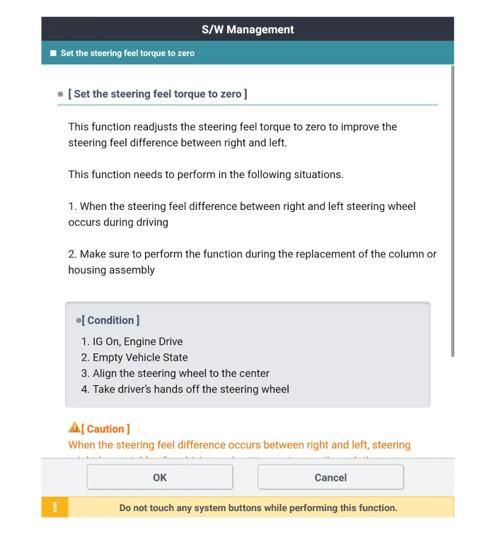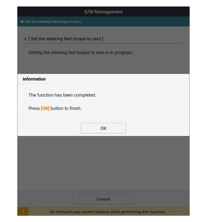 Select the "Set the steering feel torque to zero" on KDS screen, then select OK. |