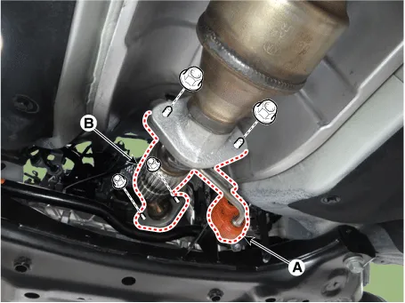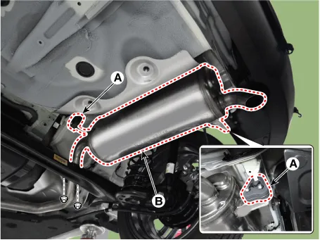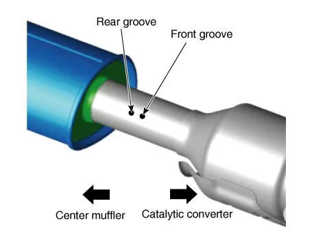 Check that the clamping part of the center muffler assembly is damaged or deformed. If the muffler is too corroded to clamp, replace the center muffler assembly.
