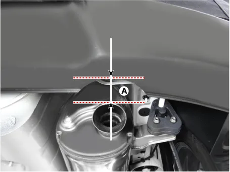 Record the gap (A) between the tail pipe (or tail trim) and the rear bumper.