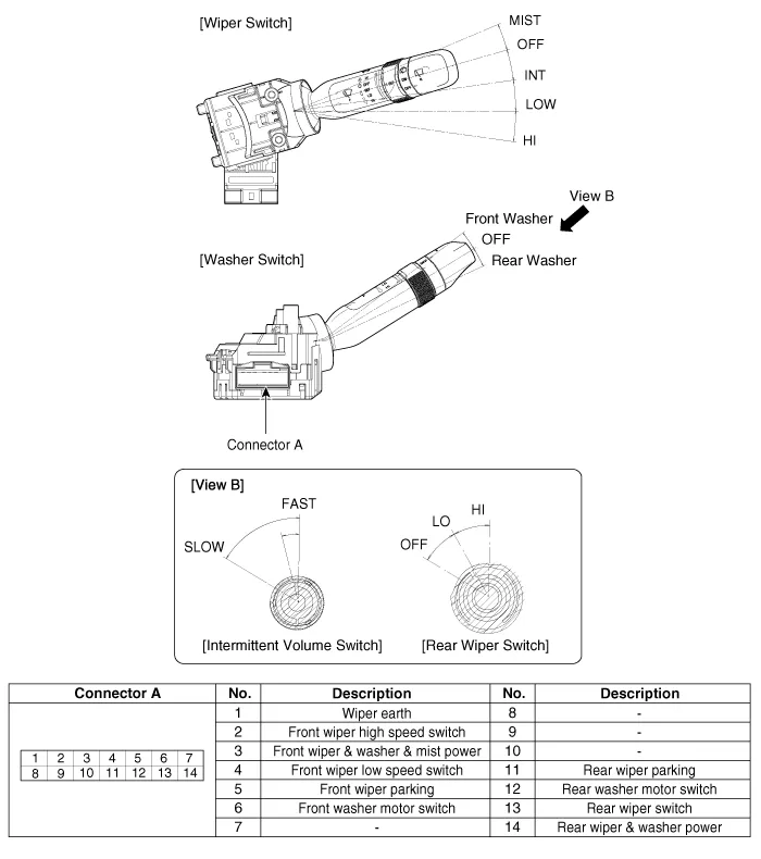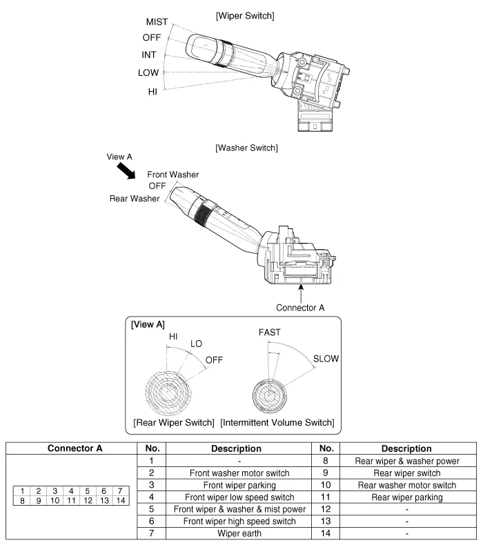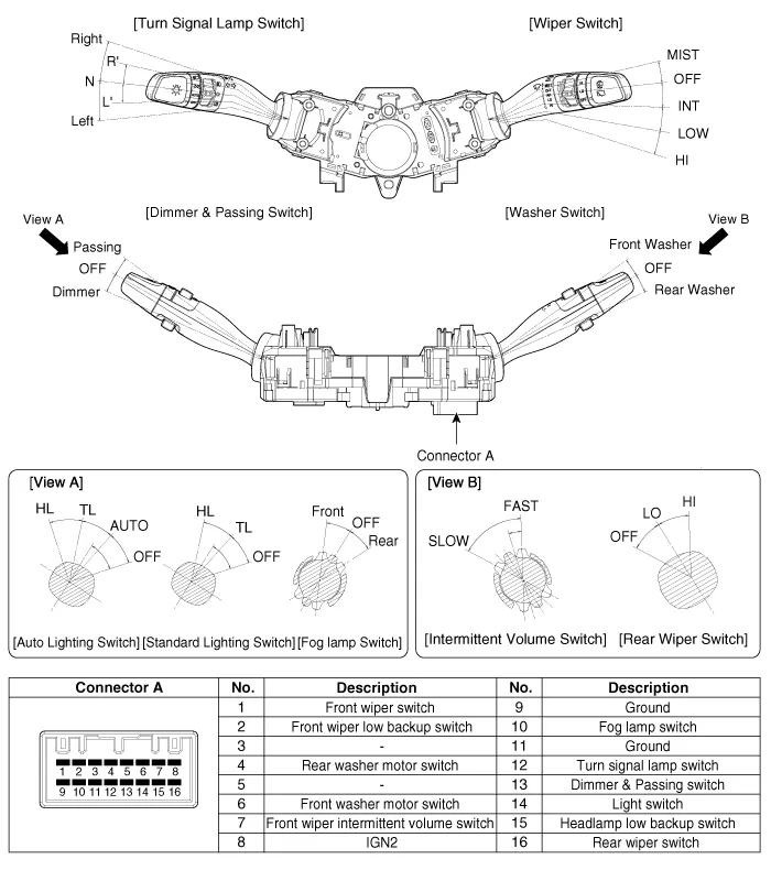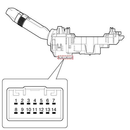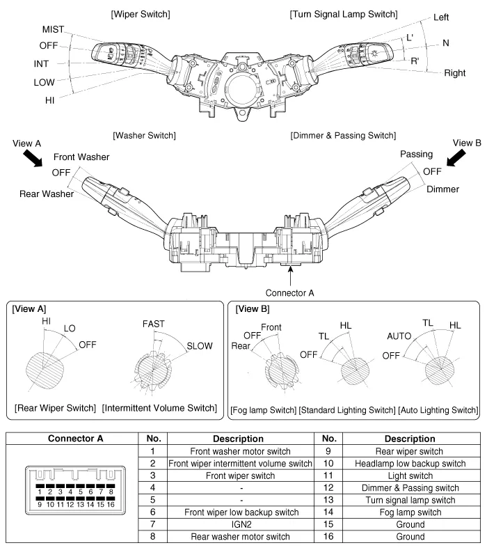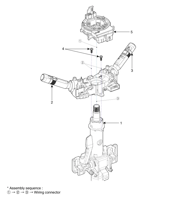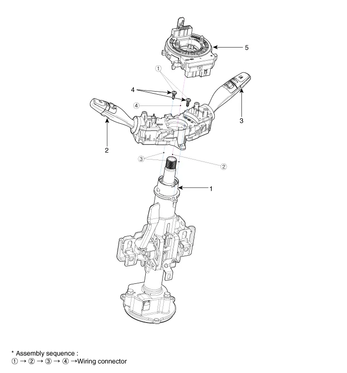 | 1 . Steering column shaft 2 . Lighting switch 3 . Wiper/Washer switch |