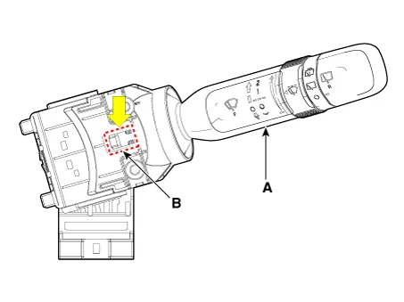 Remove the wiper switch / washer switch (A) by pushing the lock pin (B).