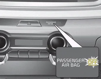 You will find the PASSENGER AIR BAG “OFF” indicator on the center facia panel. This system detects the conditions 1~4 in the following table and activates or deactivates the front passenger air bag based on these conditions.