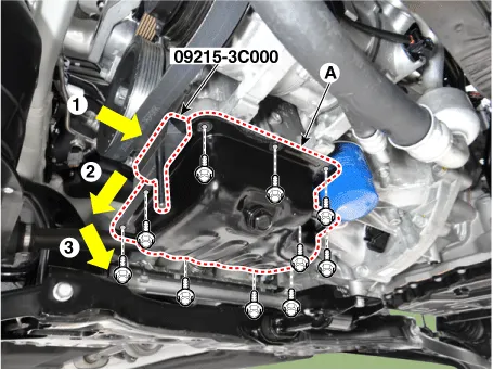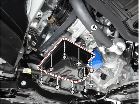 Remove the engine room under cover. (Refer to Engine And Transaxle Assembly - "Engine Room Under Cover") |