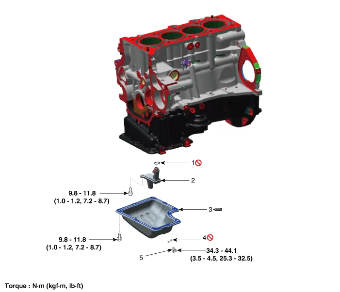 | 1. Oil screen O-ring 2. Oil screen 3. Oil pan |