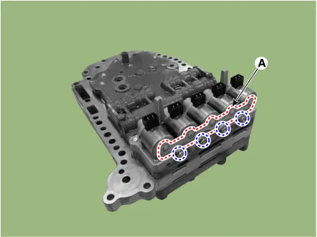 Remove solenoid valve support bracket (A) after loosening the bolts.
