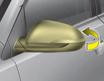 To fold the outside review mirror, grasp the housing of the mirror and then fold it toward the rear of the vehicle.
