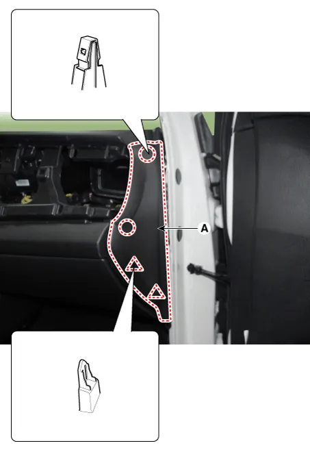Remove the crash pad side cover (A).