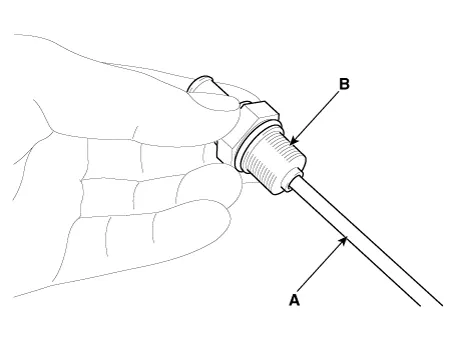 Insert a thin stick (A) into the PCV valve (B) from the threaded side to check that the plunger moves.