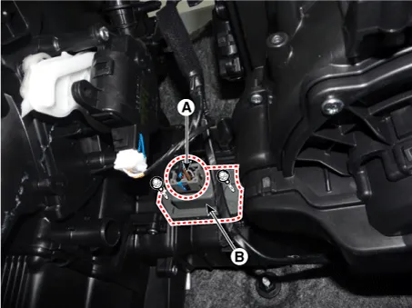 Disconnect the connector (A) and then remove the power mosfet (B) after loosening the mounting screws.