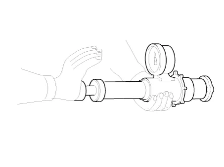 Apply a pressure tester to the radiator and apply a pressure of 93.16 - 122.58 kPa (0.95 - 1.25 kgf/cm², 13.51 - 17.78 psi).
