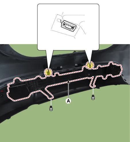 Remove the rear bumper beam assembly (A) after loosening the mounting clips.