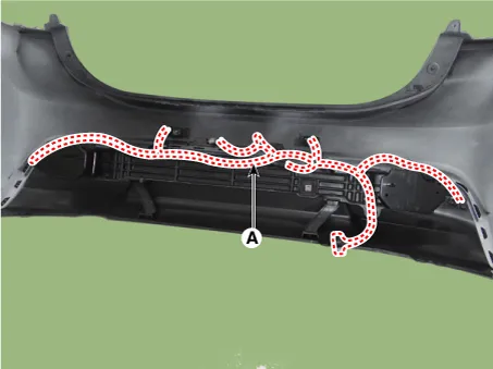 Disconnect the rear bumper beam mounting wiring harness (A).