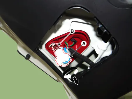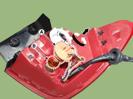Remove the back up lamp bulb (B) by turning the socket (A) counterclockwise.