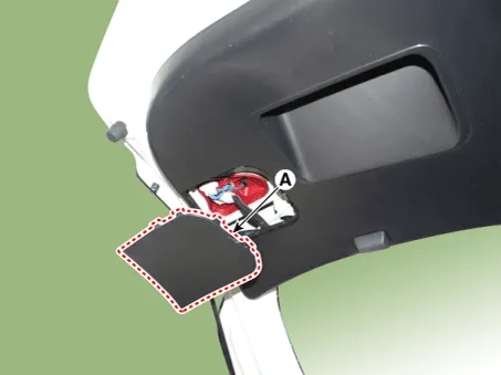 Repair procedures Removal 1. Disconnect the negative (-) battery terminal. 2. Detach the vanity lamp (A) using a flat-tip screwdriver. 3. Disconnect the vanity lamp connector (A).
