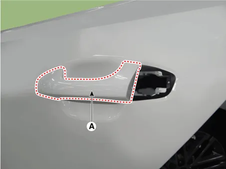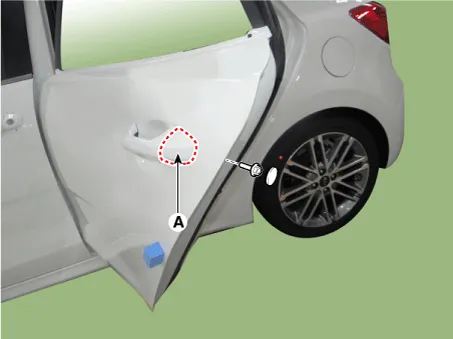 Remove the rear door outside handle cover (A) after loosening the mounting bolt.