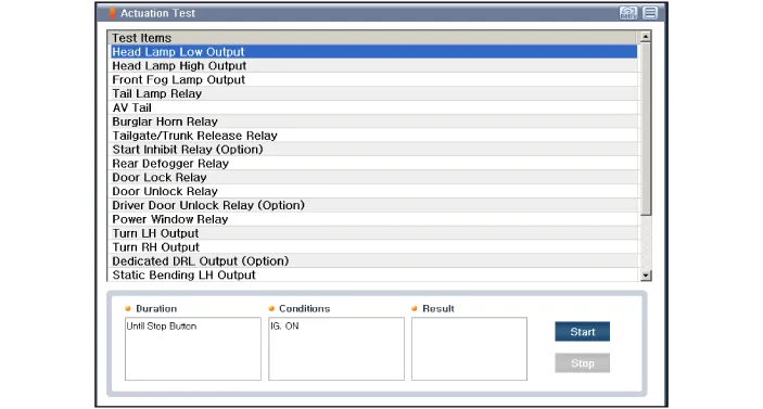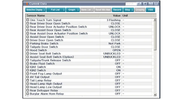 In the body electrical system, failure can be quickly diagnosed by using the vehicle diagnostic system (KDS/GDS). The diagnostic system (KDS/GDS) provides the following information.