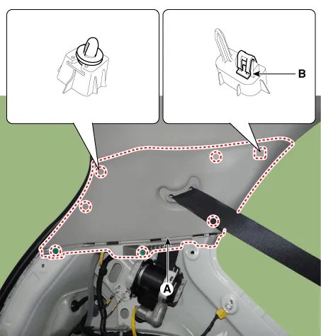 Remove the luggage side trim. (Refer to Interior Trim - "Luggage Side Trim") |