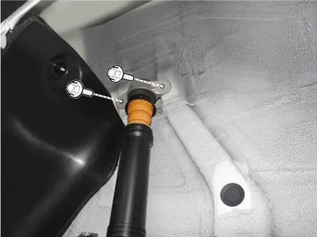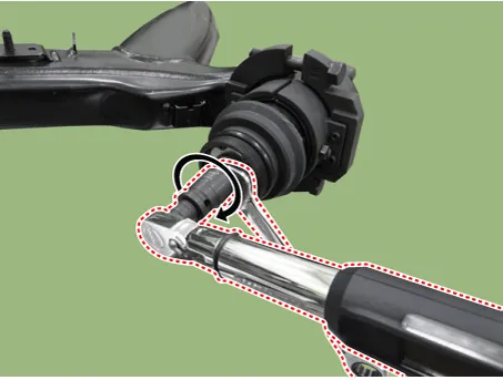 Loosen the bolts and then remove the rear shock apsorber.