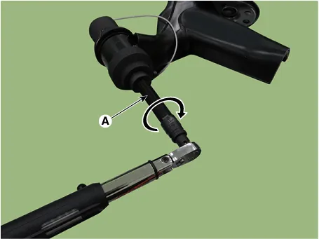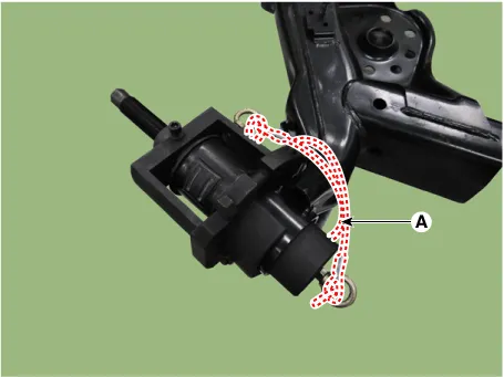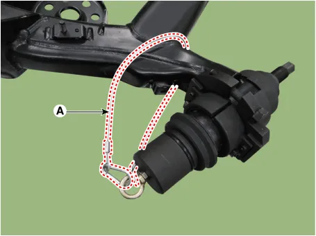 Connect the safety wire (A) by winding once around torsion beam axle.