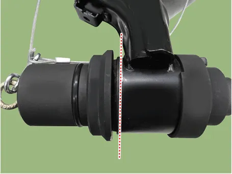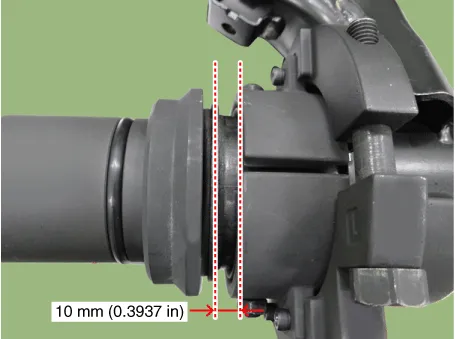 Install until it has 10 mm (0.3937 in) gap between the bush and the end edge of bush guide by rotating the main bolt (A) counterclockwise with air impact wrench. In this procedure check if the nut is loosening or not by eyesight through the hole of cap (B). And if the nut is loosening then re-tighten by regulated torque.