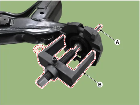 Install a new bush by aligning the groove of bush (A) and the lower section (B) of the torsion beam axle.