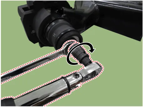 Rotate the main bolt counterclockwise until the bush and the end of the torsion beam are matched by using a hand wrench.