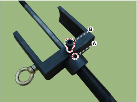 Install the installer adapter (B) by inserting the main bolt (A) into the bush hole.