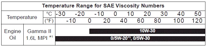 Engine oil viscosity (thickness) has an effect on fuel economy and cold weather operation (engine start and engine oil flowability). Lower viscosity engine oils can provide better fuel economy and cold weather performance, however, higher viscosity engine oils are required for satisfactory lubrication in hot weather. Using oils of any viscosity other than those recommended could result in engine damage. When choosing an oil, consider the range of temperature your vehicle will be operated in before the next oil change. Proceed to select the recommended oil viscosity from the chart.