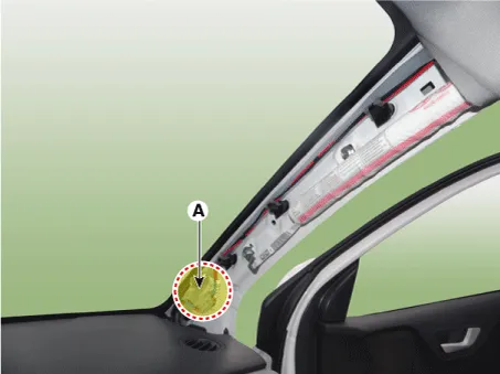 Disconnect the roof connector (A) and then remove the mounting clips. [Driver's]