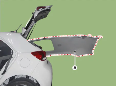 Repair procedures Adjustment (5Door) 1. After loosening the tailgate hinge (A) mounting bolts, adjust the tailgate by moving it up and down, or right and left.