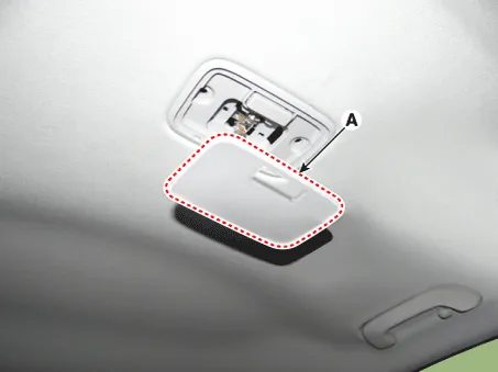 Using a screwdriver or remover, separate the room lamp lens (A) from the room lamp.