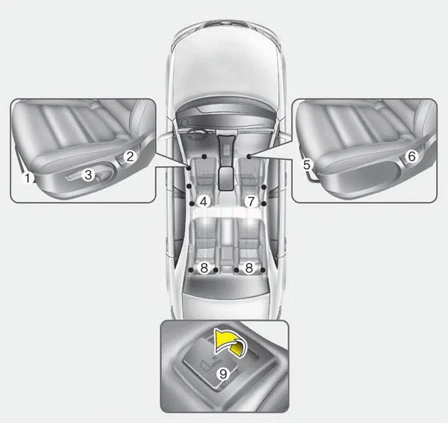Use extreme caution when picking up small objects trapped under the seats or between the seat and the center console. Your hands might be cut or injured by the sharp edges of the seats mechanism.