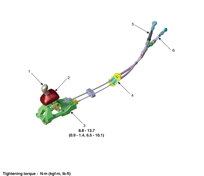 4. Retainer 5. Shift cable 6. Select cable |