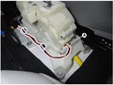 Disconnect the main connector (A) and then remove the wiring mounting clips from the shift lever.