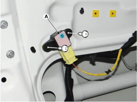 After disconnecting the side impact sensor connector (A) and loosening the bolt(B), remove the sensor.