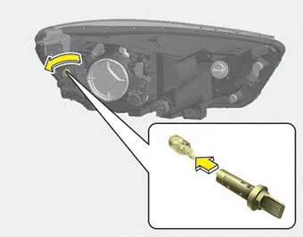 1. Open the hood. 2. Remove the bulb-socket from the headlamp assembly by turning the bulb-socket counterclockwise until the tabs on the bulb-socket align with the slots on the headlamp assembly.