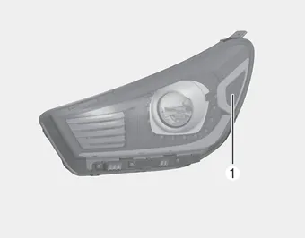 Position lamp + DRL (LED type) bulb replacement If the position lamp + DRL (LED) (1) does not operate, have the vehicle checked by an authorized Kia dealer.