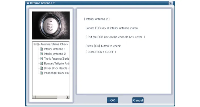 If the smart key runs normal , the related antenna, smart key(transmission, reception) and exterior receiver are normal. |