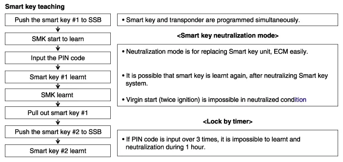 Prior to start learning service, Fob-In signal must be active and the vehicle secret code (called as PIN code) should be known.