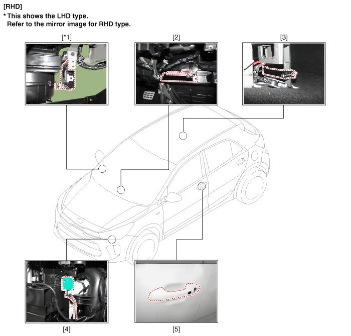 | 1. Smart key unit (SMK) 2. Interior antenna 1 3. Interior antenna 2 |