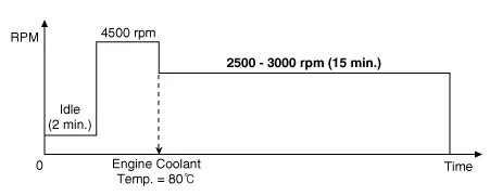 Step on the accelerator pedal and hold it steady at 4500 rpm with the shift lever in N position to warm up the engine until the temperature of the engine coolant reaches 80°C. |