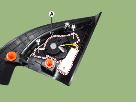 Remove the tweeter speaker (A) after loosening the mounting screws.