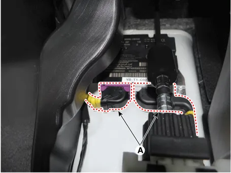 Disconnect the Supplemental Restraint System Control Module (SRSCM) connector (A).