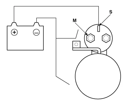 Disconnect the battery from the M terminal. If the pinion does not retract, the hold-in coil is working properly.